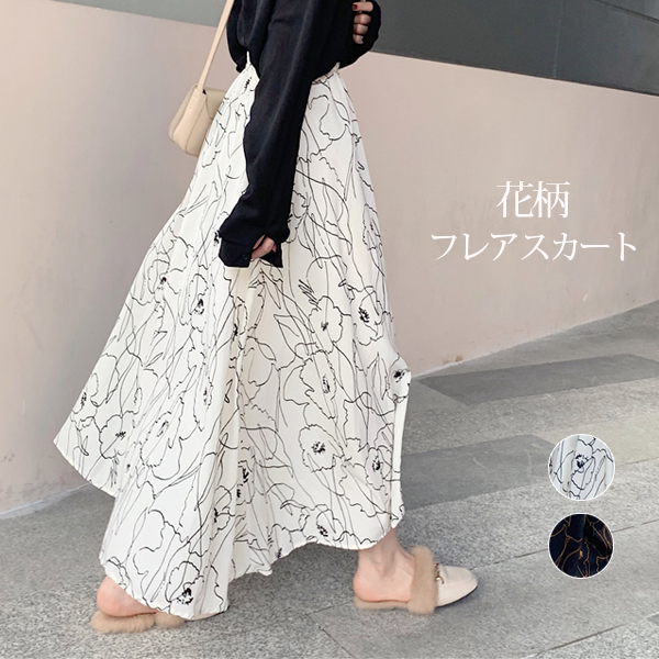 フレアスカート レディース 花柄スカート マキン丈 ハイウエストスカート レディース ロングスカート