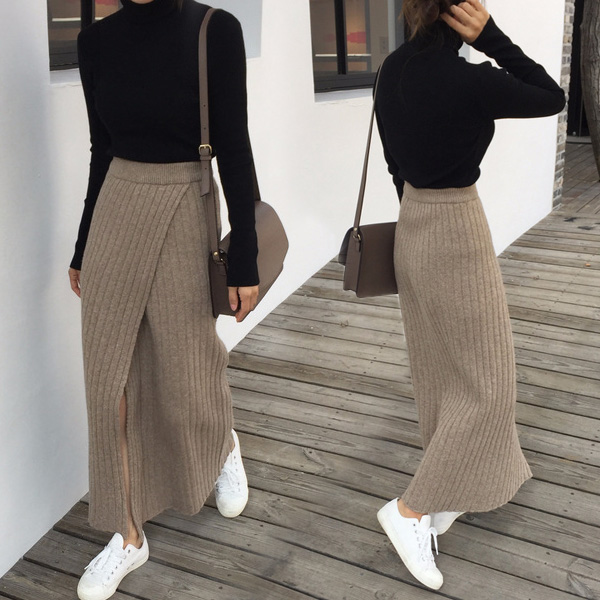 スリット スカート レディース リブ ニットスカート ロングスカートレディースファッション ボトムス スカート