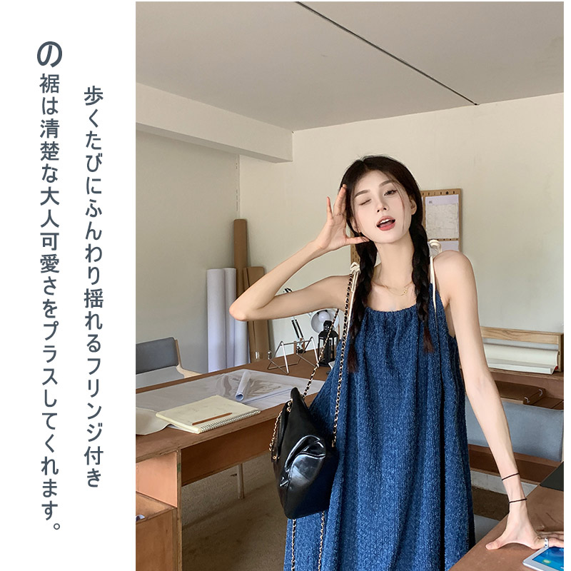 ロングスカート デニムスカート ジーンズスカート キャミソール ノースリーブ レディース ボトムス デニムスカート フレアスカート レトロ ライン ブルー 春 秋 不規則 デザイン ポケット 無地