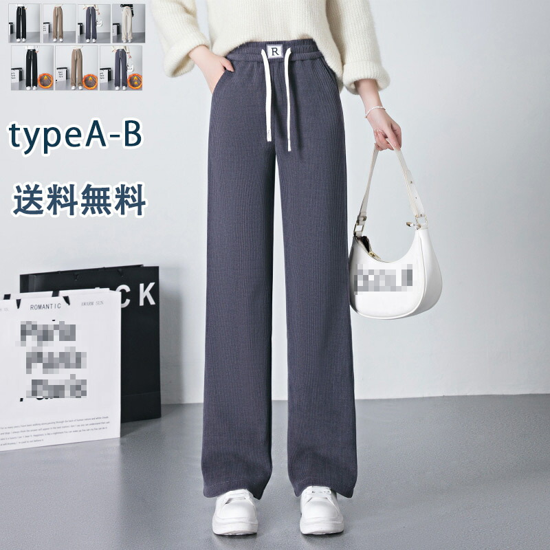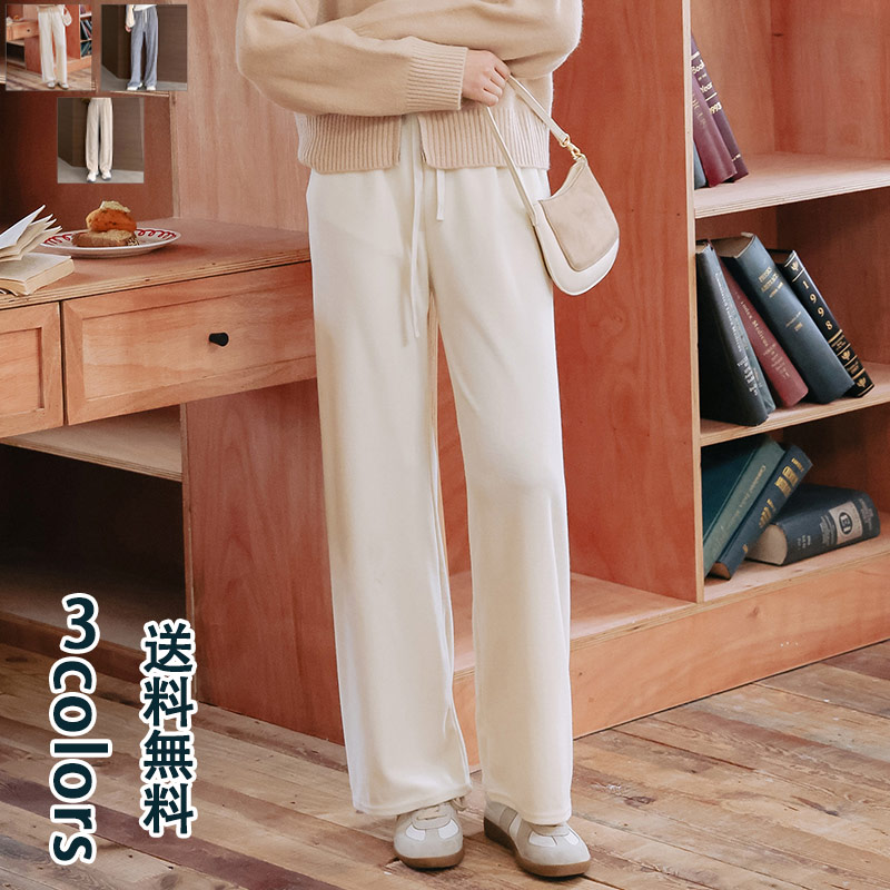 セルフカット リブ ワイドパンツ ウエストゴム レディース ストレッチ ボトム 春 夏 秋 きれいめ かわいい