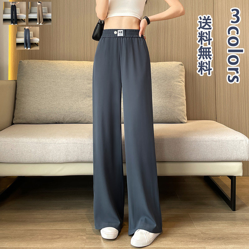 ハイウエスト 美脚 脚長 ストレートパンツ レディース ボタンストラップ ワイドパンツ ゆったり きれいめ パンツ ズボン 長ズボン ロングパンツ スリム スタイルアップ