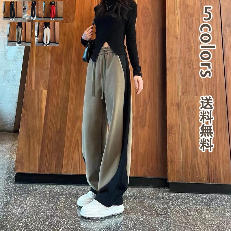 ワイドパンツ レディース ガウチョパンツ スカンツ きれいめ 大きいサイズ 配色切替 春 夏 部屋着 運動着 着痩せ 楽ちん リラックスワイドパンツ