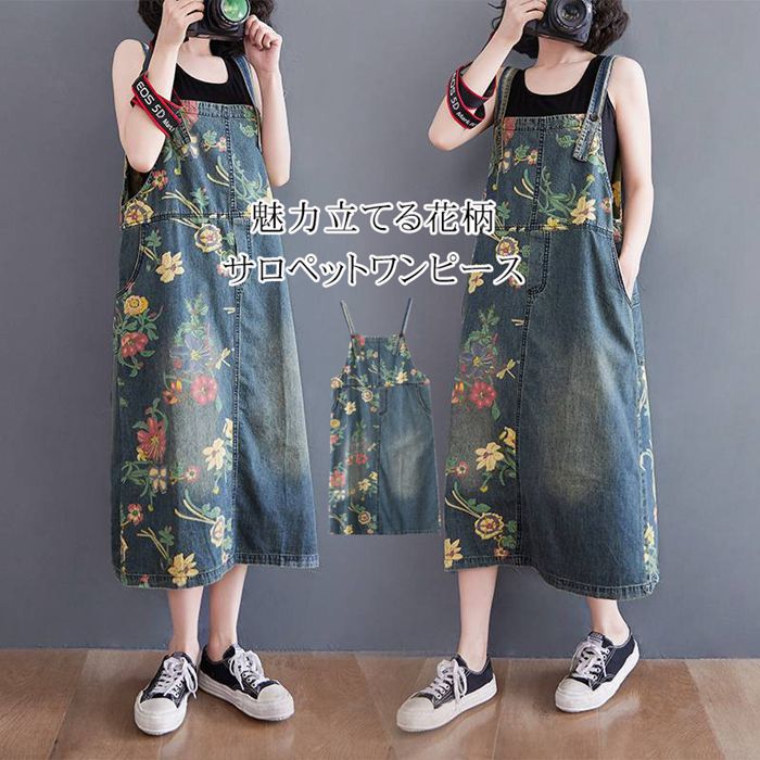 サロペットワンピース レディース オーバーオール 大きいサイズ デニムマキシワンピース 春夏秋 体型カバー オールインワン ファッション デニムワンピース