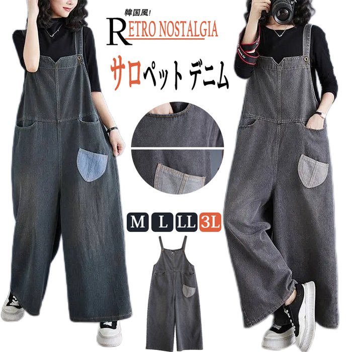 サロペット レディース 40代 春秋 新作 キレイめ 韓国風 黒 オールインワン デニム ワイドパンツ ワンピースタイプ オーバーオール おしゃれ ゆったり 30代 50代