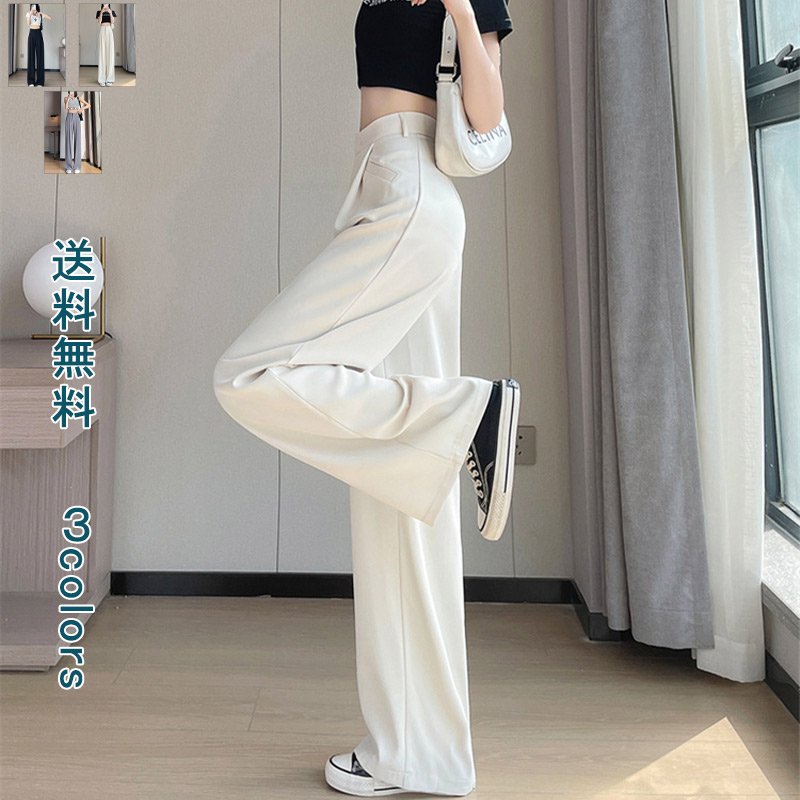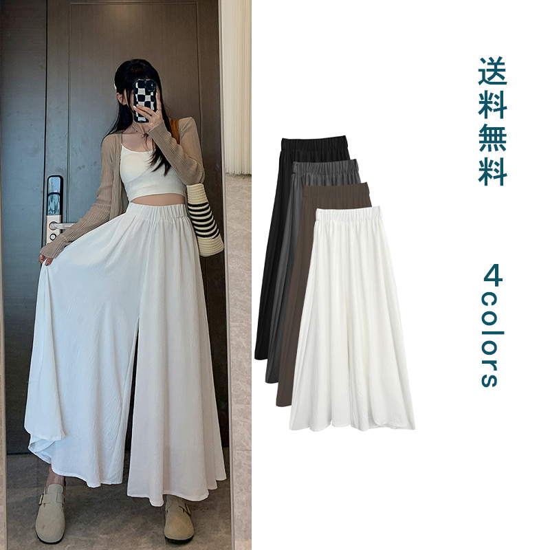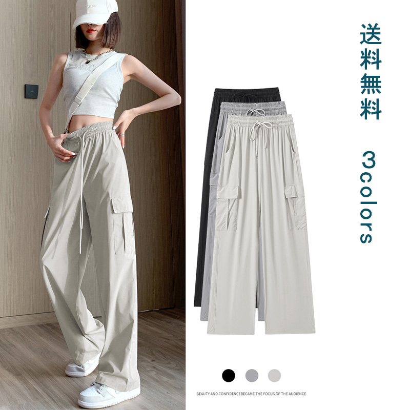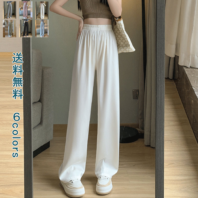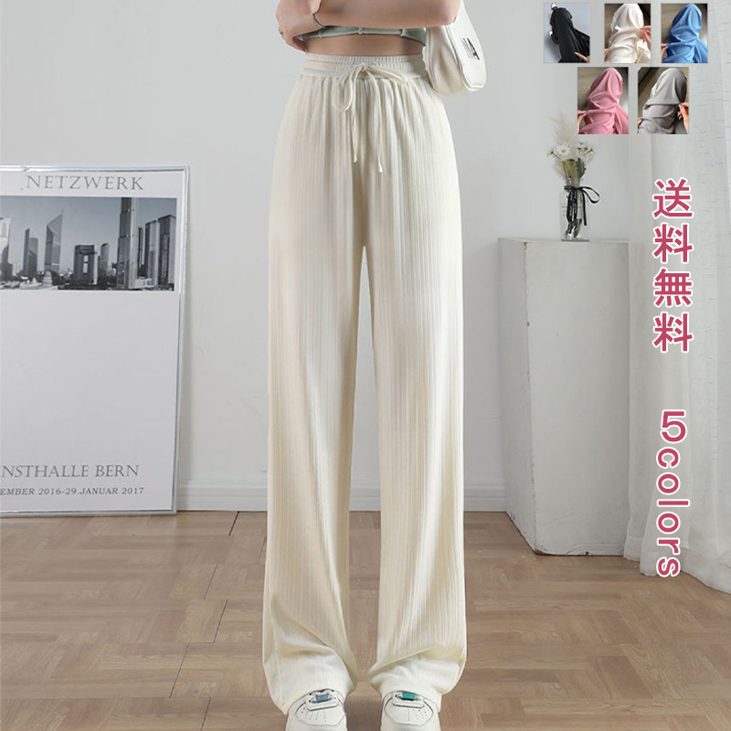 ワイドパンツ レディース ボトムス パンツ 美脚パンツ ゆるパンツ イージーパンツ 夏 ロング丈 ウエストゴム 楽ちん 体型カバー カジュアル 通勤 通学 涼しい 涼感 ヒンヤリ カット なめらか