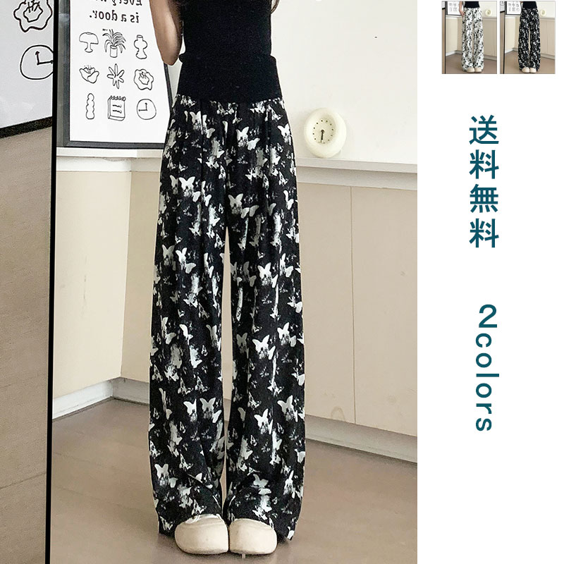 ワイドパンツ レディース ボトムス パンツ 美脚パンツ ゆるパンツ イージーパンツ 中国風 夏 ロング丈 ウエストゴム 楽ちん 体型カバー カジュアル 通勤 通学 涼しい 涼感 ヒンヤリ カット