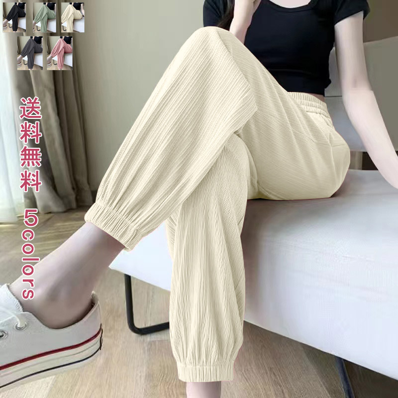ワイドパンツ レディース ボトムス パンツ ジョガーパンツ 美脚パンツ ゆるパンツ イージーパンツ 夏 ミモレ丈 ウエストゴム 楽ちん 体型カバー カジュアル 通勤 通学 涼しい 涼感 ヒンヤリ