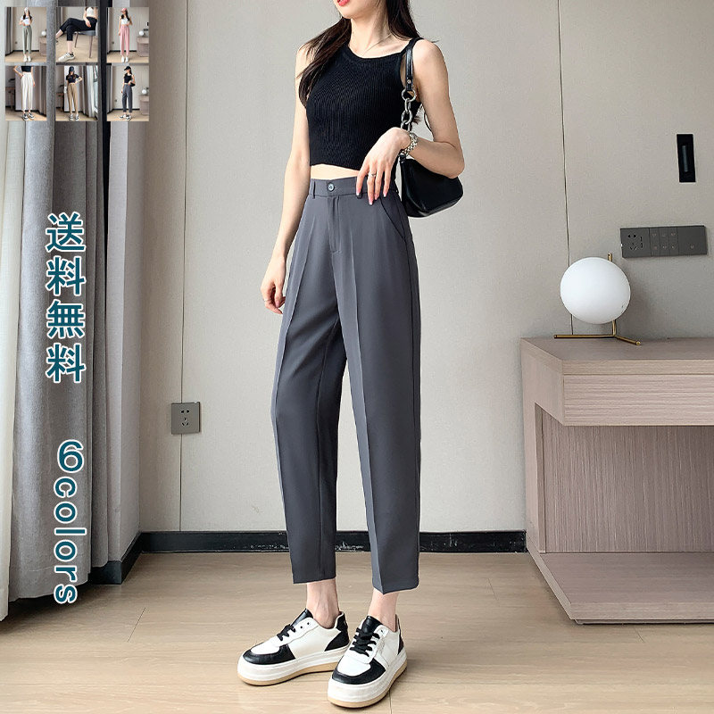 テーパードパンツ レディース ボトムス パンツ 美脚パンツ スティックパンツ 夏 ミモレ丈 ハイウェイスト ウエストゴム 楽ちん 体型カバー カジュアル 通勤 通学 ゆったり 大人かわいい おしゃれ