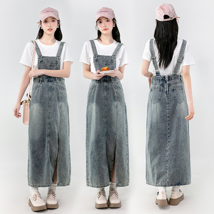 デニムサロペット サロペット デニムスカート レディース 体型カバースカート サロペット ミドル丈 デニムワンピース デニム オールインワン マキシ丈 デニムスカート デニムジャンパースカート