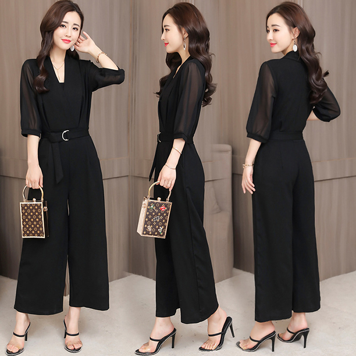 レディース ワンピース オールインワン 服 マキシ丈 ロング丈 体型カバー Vネック レディースファッション ワイドパンツ 着心地 半袖 オフィス 通学 通勤 20代 30代 40代