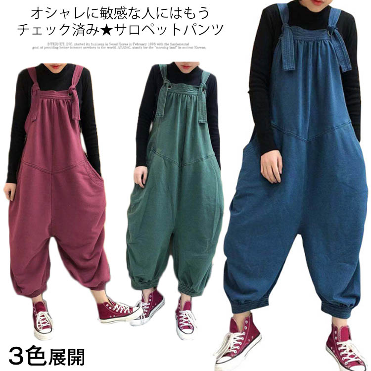 サロペット デニムサロペット オールインワン サロペット サルエルパンツレディースファッション オールインワン サロペット