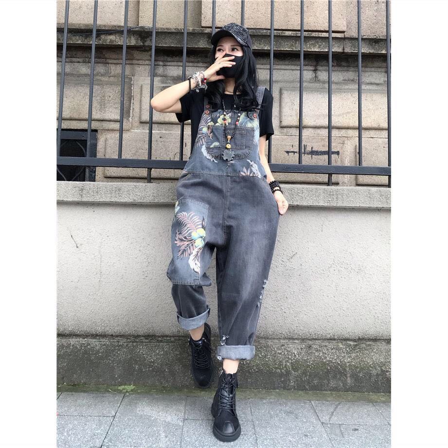 オーバーオール デニムパンツ 春秋レディース 花柄 サロペット ゆったり 024レディースファッション オールインワン サロペット