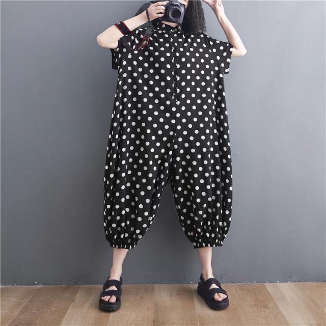 レディース オーバーオール 春夏 連体服 ゆったり サルエル 薄手 大きいサイズ ドット柄 九分丈レディースファッション オールインワン サロペット