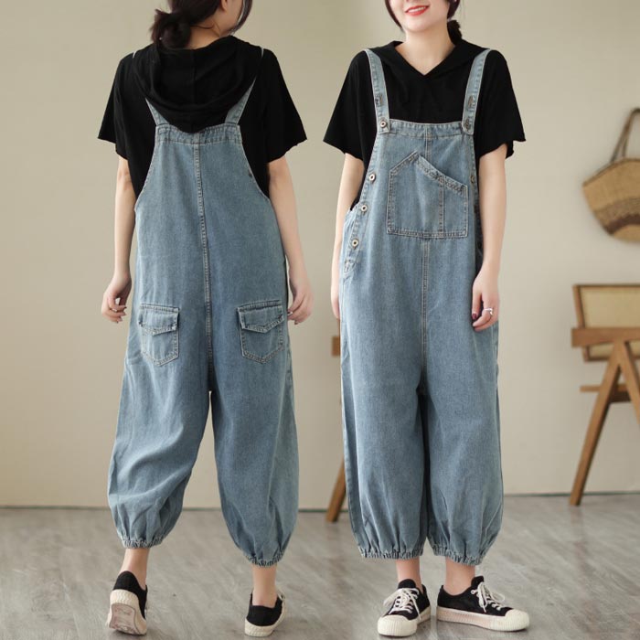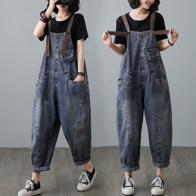 春 秋 夏 サロペット レディース ブルーデニムサロペット オールインワン 大人可愛い 大きいサイズ ゆったり サルエルパンツ