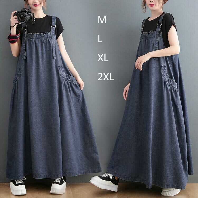 キャミワンピ ロングワンピース オールインワン ジャンパー サロペット スカート 無地 マキシ丈 オーバーサイズ ワンピース 20代 30代 40代