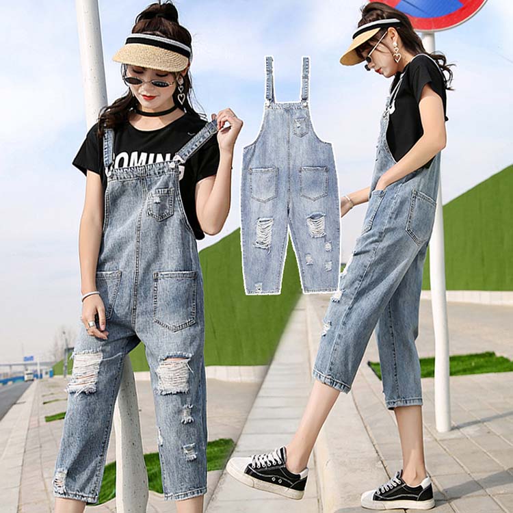 オールインワン サロペット サルエルパンツ デニムパンツ ジーンズダメージ加工オーバーオールレディ―スデニムサロペット