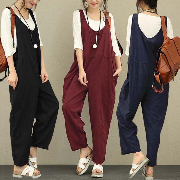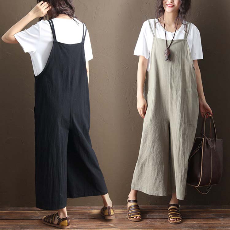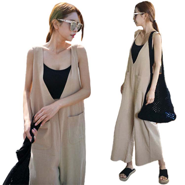 オールインワン サロペット 夏 パンツ レディース ワイドパンツ リネン リネン 混 綿麻 大きいポケット 大きいめ ゆったり 大きいサイズ 快適 無地 2colors ワンサイズ