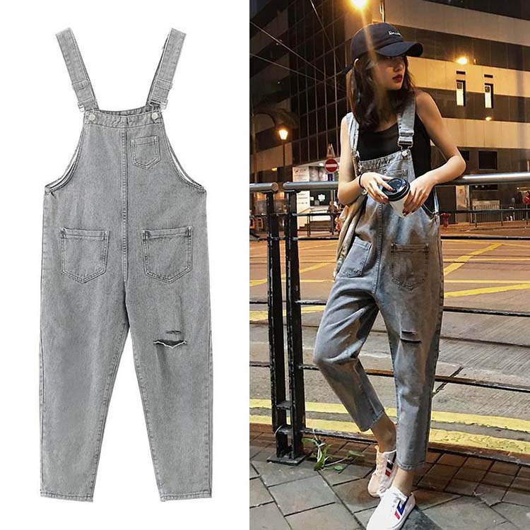 オールインワン サロペット 夏 パンツ レディース ダメージ デニム スキニー 灰色 九分丈 長ズボン サロペットパンツ おしゃれ ダメージ加工 カジュアル 学生 通学 普段着