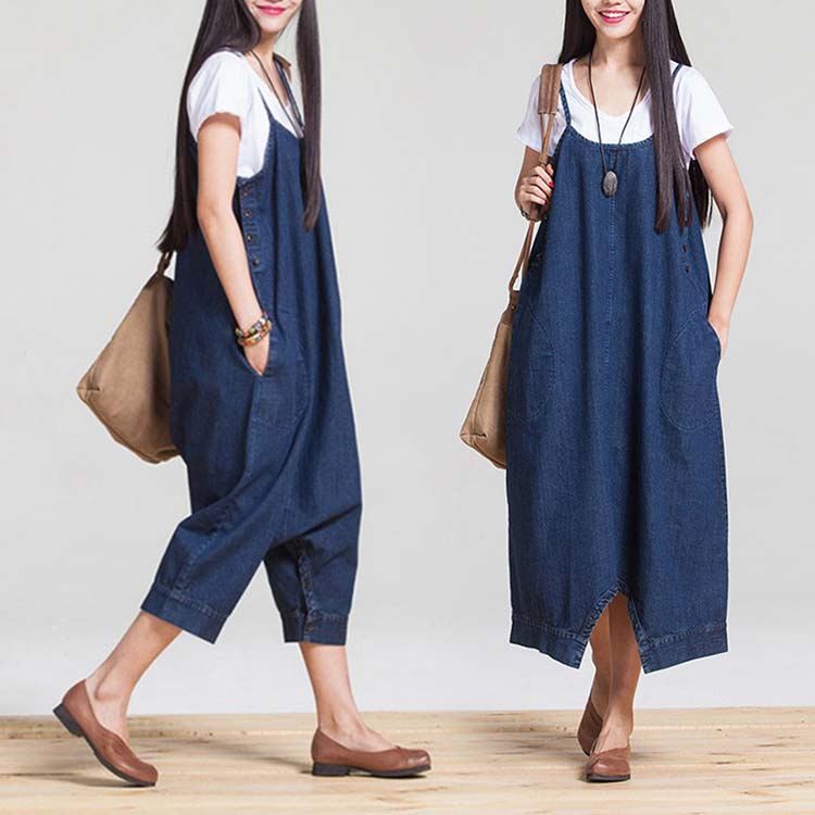 オールインワン サロペット 夏 パンツ スカート ロング デニム レディース 2 サルエルパンツ ワンピース ミディアムウェスト 大人 デニムズボン 七分丈 2