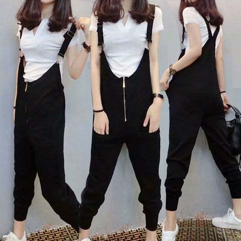 オールインワン サロペット 夏 パンツ レディース ハーレムパンツ 九分丈 黒 ハイウェスト 着痩せ 体型カバー 2 3 春秋 無地 サロペットパンツ 大きいサイズ