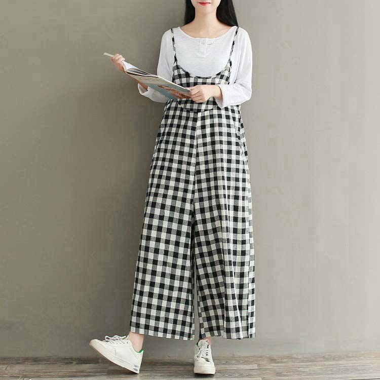 オールインワン サロペット 夏 パンツ レディース チェック柄 ワイドパンツ 九分丈 オールインワンパンツ M L XL 2XL 3XL 大きいサイズ ゆったりサイズ 大きいめ 学生 通学