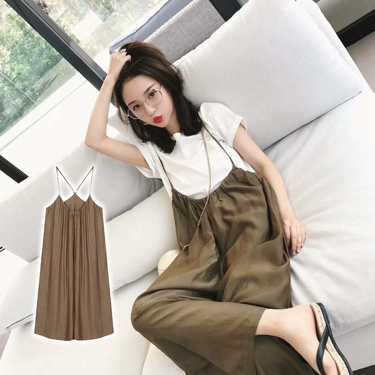 オールインワン サロペット 夏 パンツ レディース vネック 九分丈 ハイウェスト タンクトップ 2点セット 夏服 スキニー 着痩せ 春夏 学生 通学 普段着 日常 海