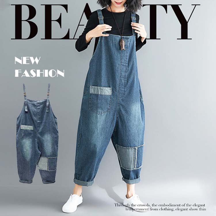 デニムズボン オールインワン サロペット 夏 パンツ レディース サルエルパンツ ハーレムパンツ デニム サロペット 混色 マタニティ ママ 母 大きいサイズ 大きいめ 着やすい