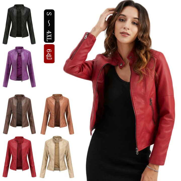 ライダース ジャケット レディース ノーカラージャケット 革ジャン レザージャケット 春 コート 秋 ダブルライダースジャケット 黒 ブラック