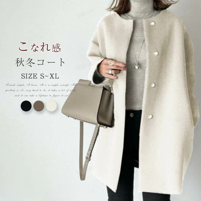 ノーカラー コート レディース 秋冬 ミドル丈コート ノーカラーコート ドロップショルダー アウター レディースコート ミセス エレガント シンプル