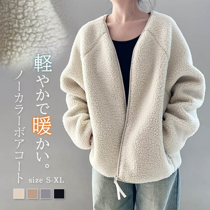 もこもこ ボアコート ショート丈 フェイクファー レディース アウター ジャケット コート 韓国ファッション 可愛い おしゃれ お出かけ デート ファー 暖か ノーカラー 厚手