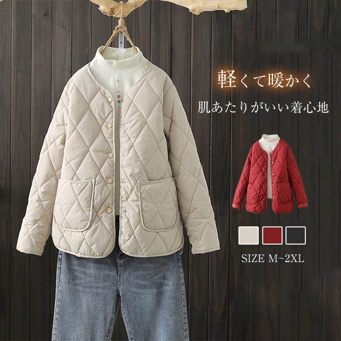 キルティング コート アウター レディース 中綿コート 秋冬 きれいめ 軽い キルティングジャケット 軽量 ノーカラーコート 冬 大きいサイズ ショート丈 ゆったり 防寒 無地 体型カバー