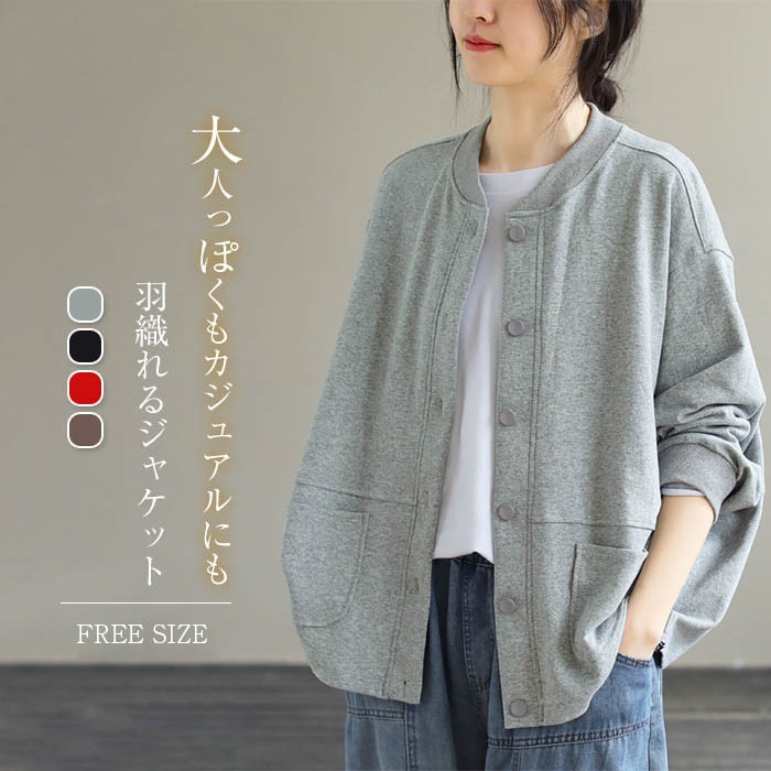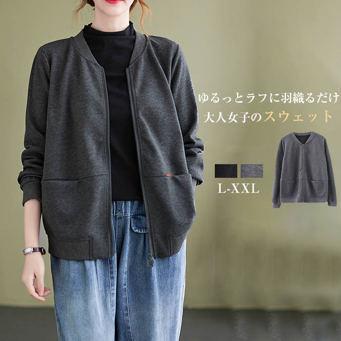 スタジャン レディース スウェット カーディガン トレーナー トップス ジャケット 秋 カジュアル 春 秋 ライトコート 薄手 羽織り コート 大人 ゆったり 重ね着