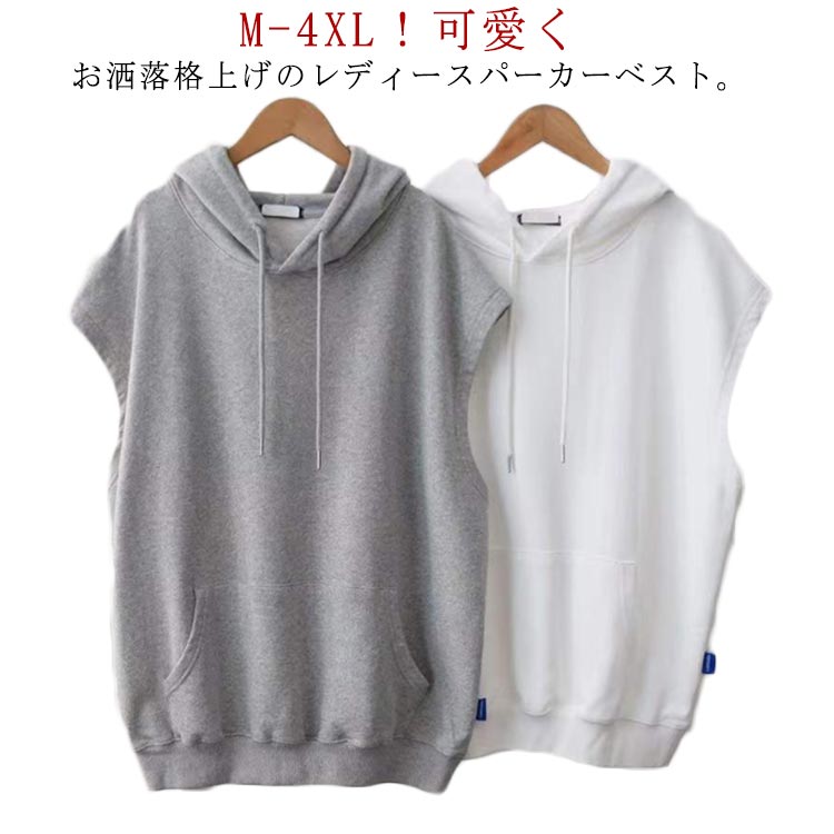 スウェットベスト レディース パーカー トレーナー チョッキ お洒落 袖なし パーカー プルオーバー スウェット フード付き トップス