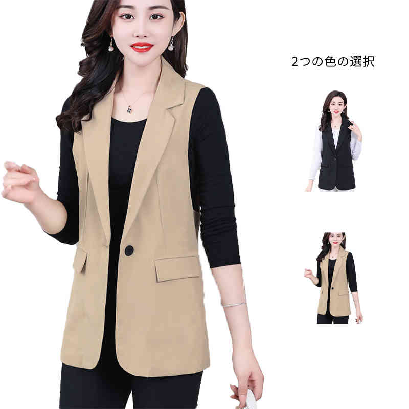 ジレ 大きいサイズ ベスト 春夏秋 ノースリーブ ロングジレ トレンチベスト 無地 ジレンチ トップス ゆったり 大人 通勤
