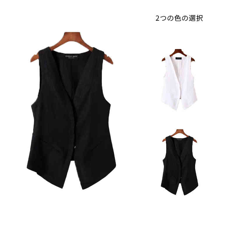 夏ベスト ショートベスト ショート丈 ベスト ノースリーブ トップス ボタンベスト 前開き 無地 トップス 純色 Vネック シンプル