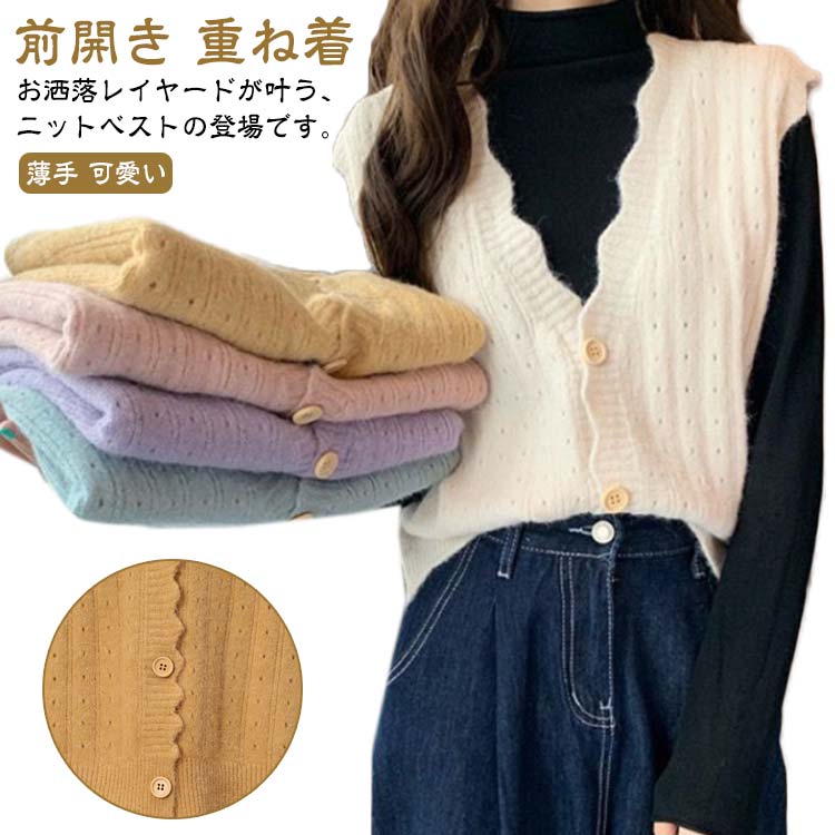 ネック ニット レディース 春夏 ニット ニットベスト ショート丈 ベスト ゆったり 重ね着 レイヤード かわいい 通勤 オフィス