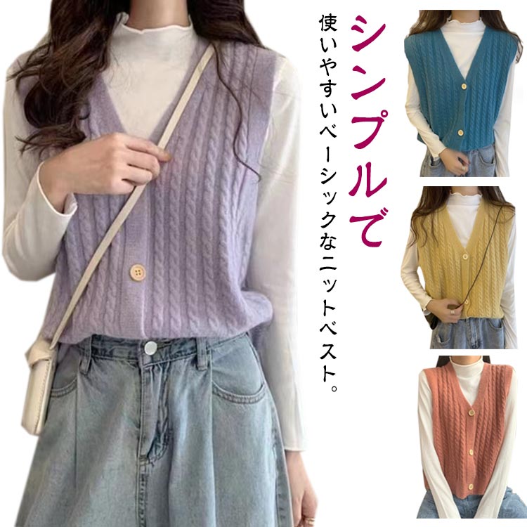 ニットベスト レディース ベスト 前開き ケーブル編み ボタン付き リブニット ニレディースファッション トップス ベスト ジレ