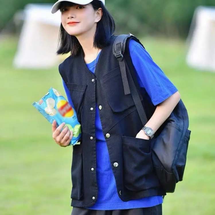 前開き 春 ノースリーブ 重ね着 オシャレ vネック ベスト カジュアル 夏 薄手 多ポケットレディースファッション トップス ベスト ジレ