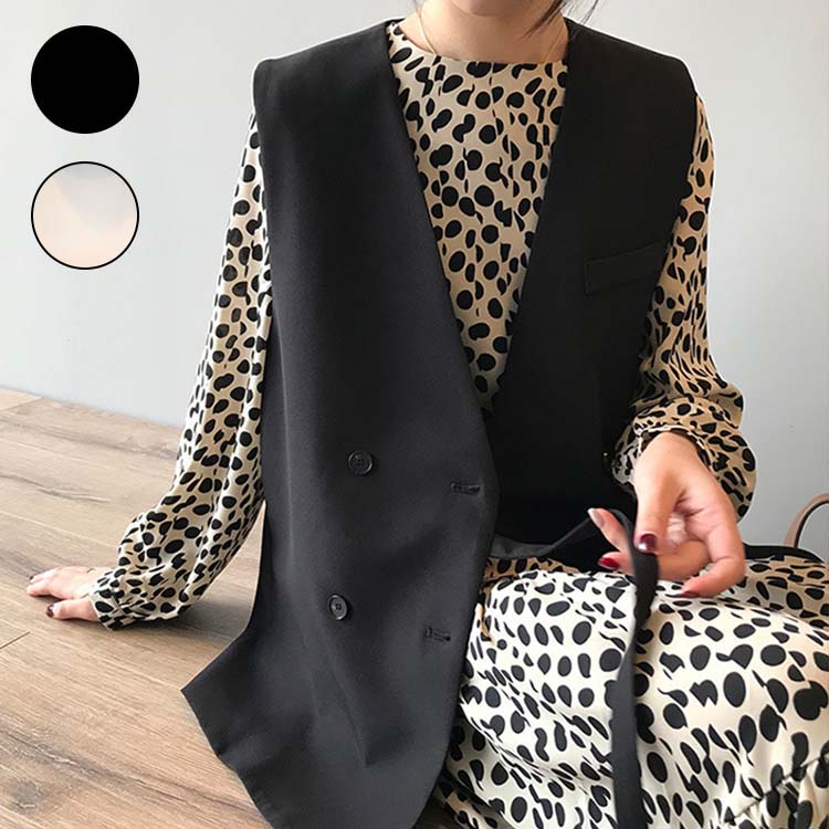 ジレ レディース 春夏 ベスト ノースリーブ 大人 カジュアル 無地 シンプル スリム ゆったり ベスト ブラック 黒 ベージュ Vネック