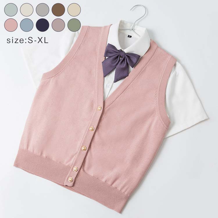 スクールセーター スクールベスト 制服 ニット ベスト 前ボタン 前開き 無地 綿100% 12色選べる 薄手 vネック ジレ ニットベスト スクール レディース セーター 袖なし