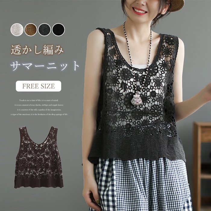 ベスト ニットベスト レディース サマーニット 春 夏 トップス 涼やか 透かし編み カーディガン カジュアル レイヤード クロシェ編み かぎ編み ノースリーブ おしゃれ きれいめ