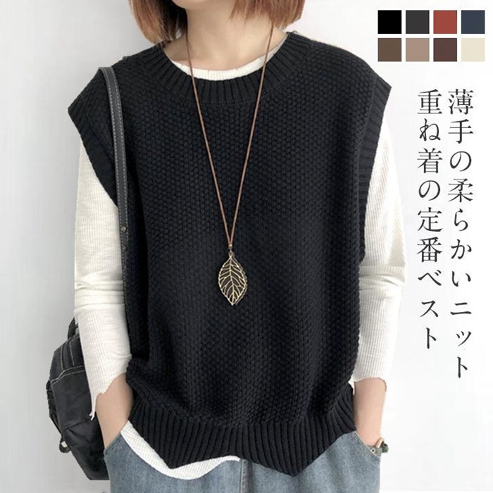 ニットベスト レディース トップス 大人カジュアル 抜け感 オフィス ゆったり シンプル 着回しおしゃれ プチプラ 韓国ファッション