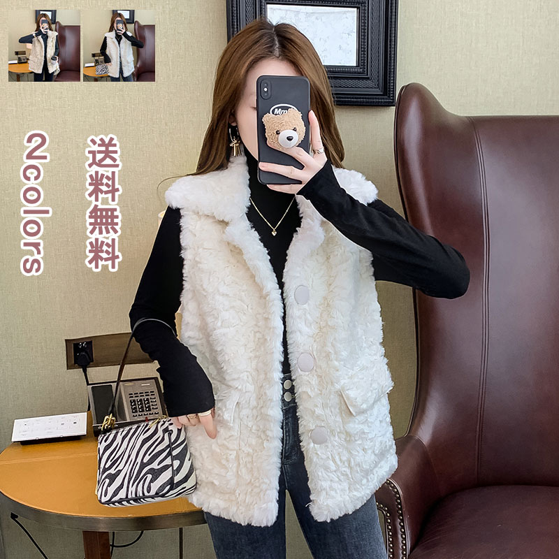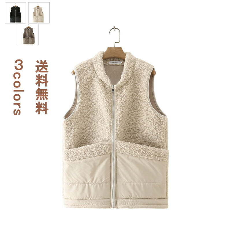 ベスト 前開きベスト レディース トップス アウター 可愛い ポケット付き モコモコ オシャレ ジップアップ 暖かい カジュアル シンプル 無地 秋冬