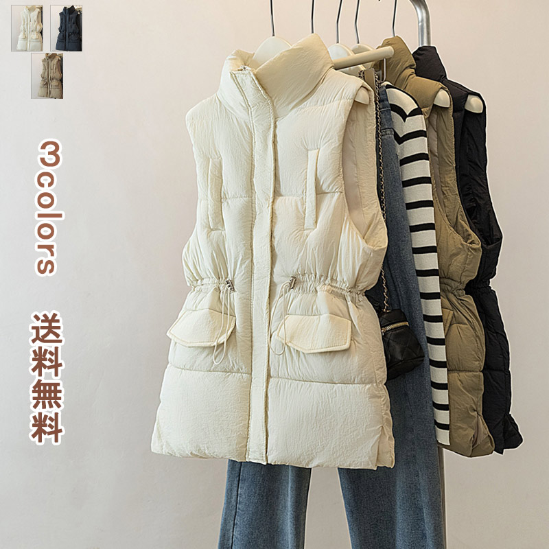 中綿ベスト レディース ダウンベスト 中綿 ライトダウン ロング丈 レディースベスト ベスト ダウン風ベスト レディース ジレ ベスト ライトアウター コート ジャケット 上質 通勤 通学 カジュアル