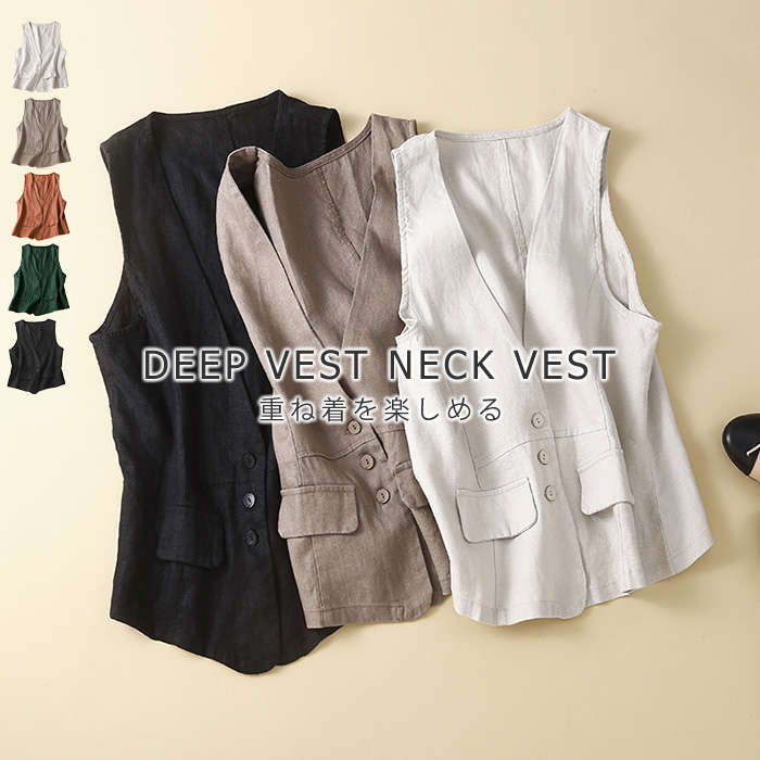 ベスト レディース 春夏 前開き きれいめ 綿麻風 コート お洒落 ノースリーブ トップス 無地 大人 着まわし カジュアル プルオーバー 着痩せ お洒落 普段着 重ね着 通勤 シンプル 20代 30