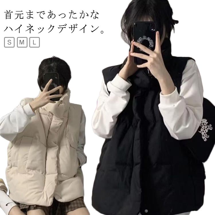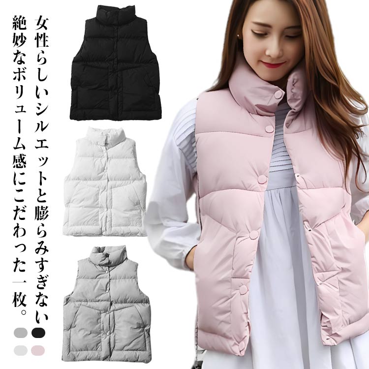 ダウンベスト 秋冬 レディース 軽量 アウター 無地 トップス 40代 羽織り ダウンジャケット 大きいサイズ おしゃれ カジュアル 中綿 立ち襟 防寒 暖かい ノースリブ 黒 白 20代 30代 ダ