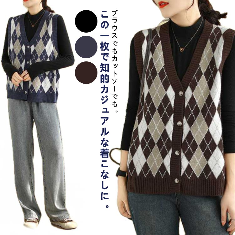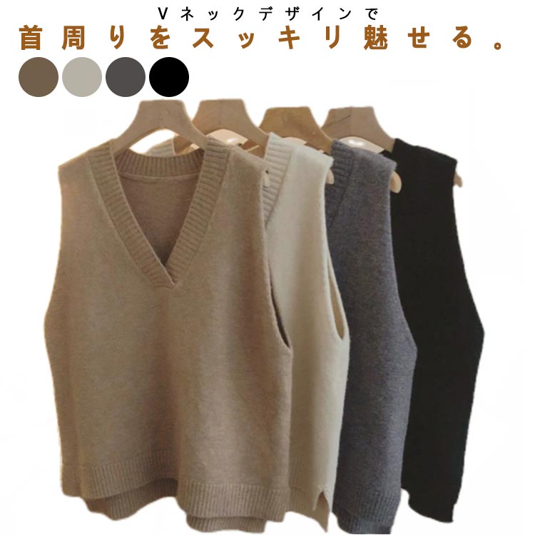 ベストニットベストリラックスレディースレイヤードネックきれいめ カジュアル シンプルレディースファッション トップス ベスト ジレ