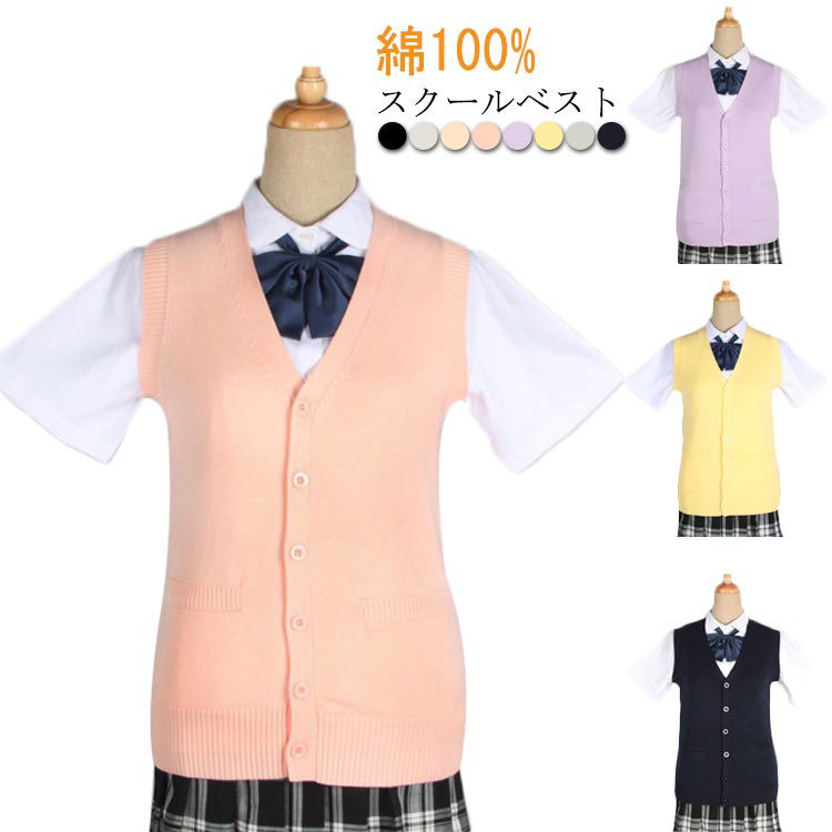 全8色 夏用 薄手前開きニットベスト スクールベスト 綿 ニット ベスト ネックレディースファッション トップス ベスト ジレ