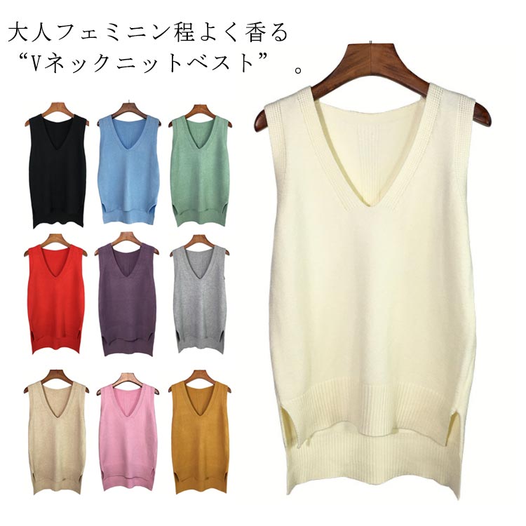 ニットベスト ニットベスト レディース 全12色 プルオーバー レディース ロングシーズン vネック 通勤 Vネックベスト