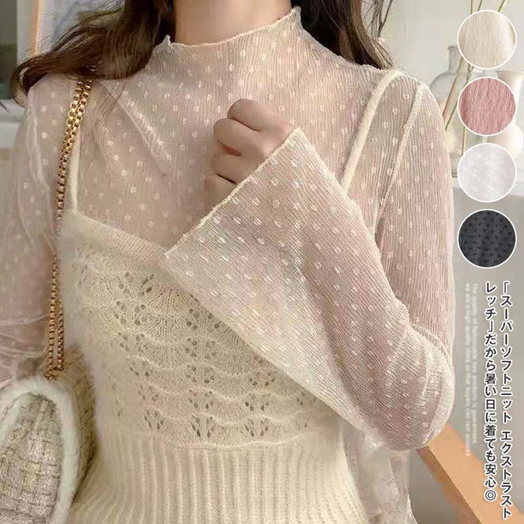 ハイネック 長袖 レディース 夏用 涼感tシャツ レース クール 冷感 薄手 インナー 重ね着 日よけ カットソー 紫外線対策 日焼け止め ボートネック インナー着 インナーシャツ